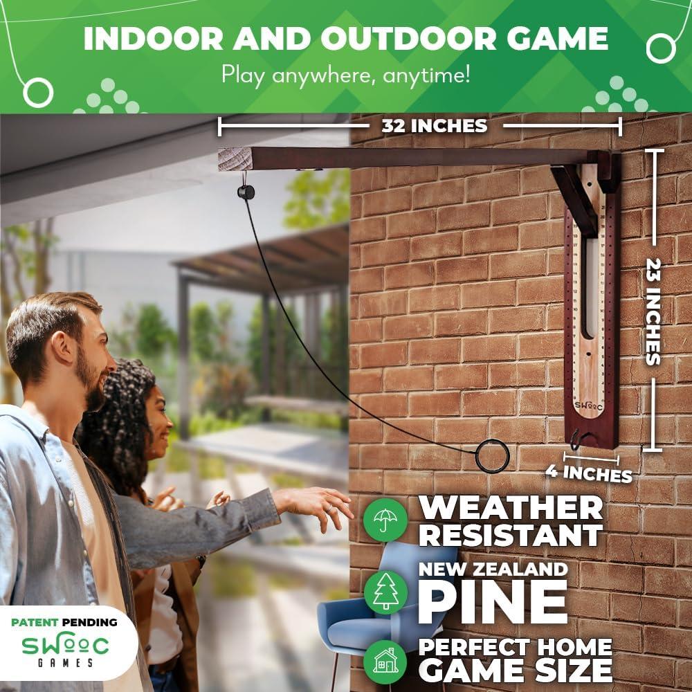 SWOOC Games - Hideaway Hook and Ring Game On A String - Weather Resistant & Easy Setup - Man Cave Games - Wall Games for Game Room Games - Wall Ring Toss Game for Adults - Ring Hook Game - Bar Games