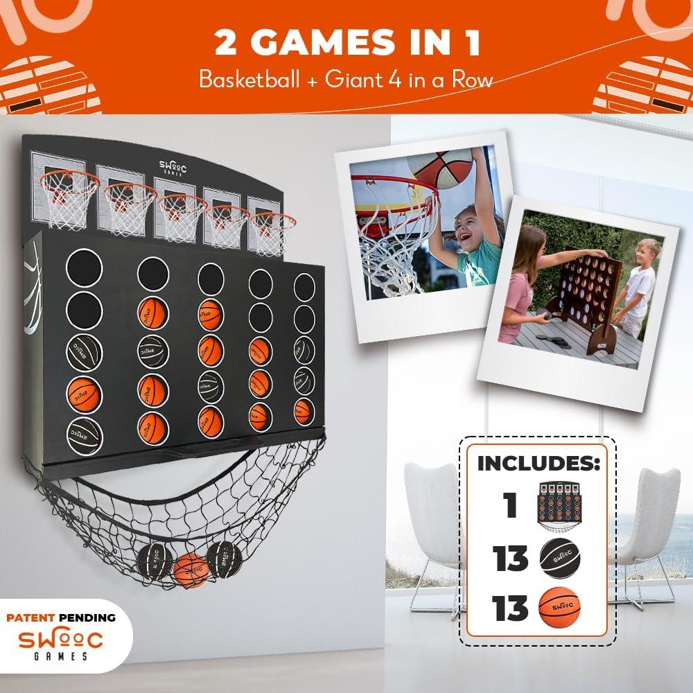 SWOOC Games – Low Post Lineup™ | Wall Mounted Giant Basketball 4 In A Row w/ 5+ Games | Basketball Hoop For Room Wall Games | Game Room Games | Mini Basketball Hoop Indoor Connect | Four In A Row Game