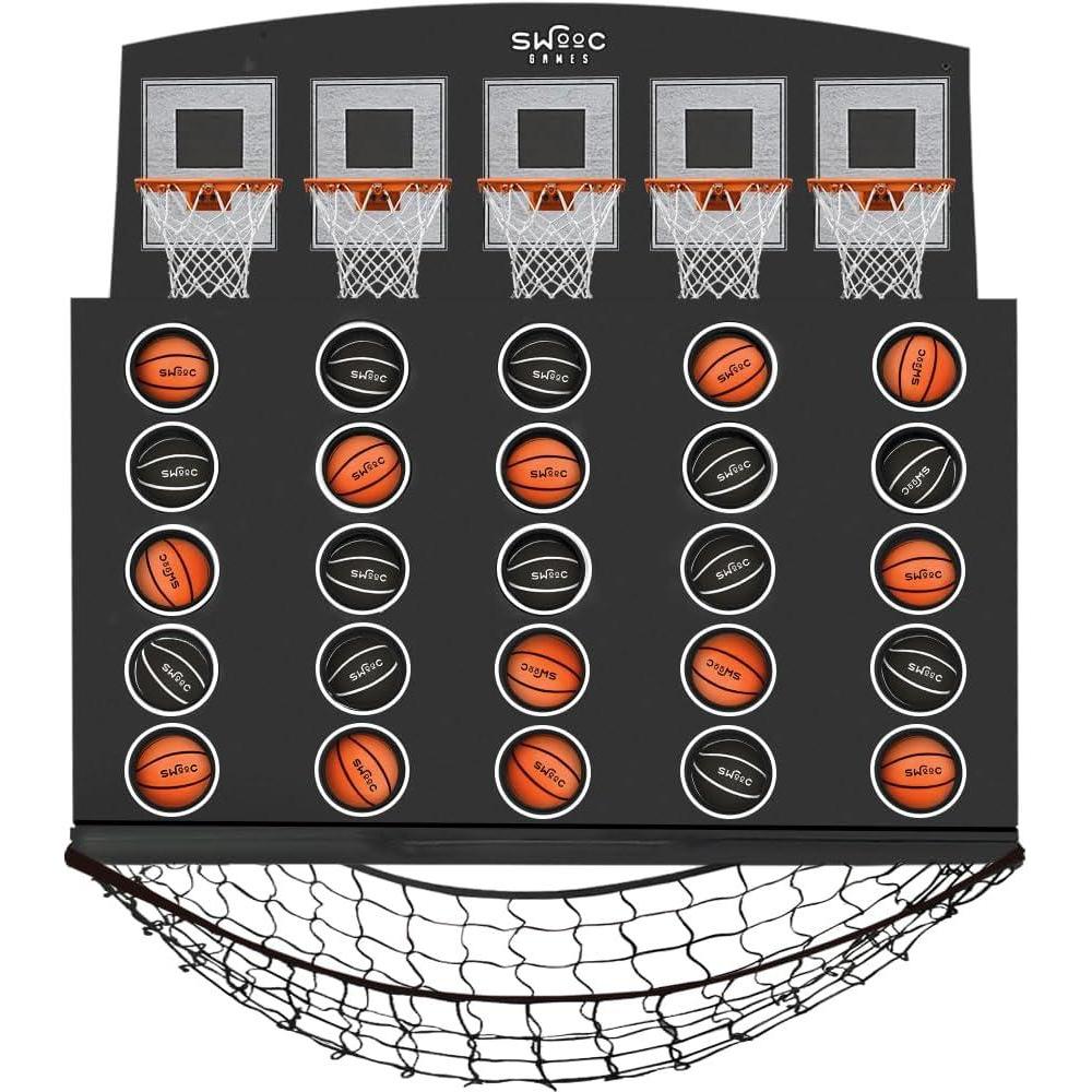 imageSWOOC Games  Low Post Lineup  Wall Mounted Giant Basketball 4 In A Row w 5 Games  Basketball Hoop For Room Wall Games  Game Room Games  Mini Basketball Hoop Indoor Connect  Four In A Row Game